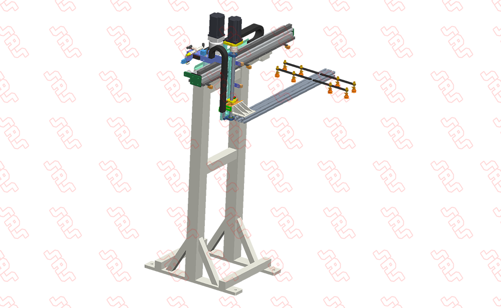 采用緊湊的機身,安裝在兩臺沖床之間,全伺服系統(tǒng)能夠快速的取出板料,機器人從板料下面吸取后翻面,整個過程同步進行,提高板料翻面生產(chǎn)時的整線節(jié)拍。