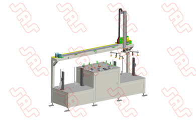 將2個拆垛工位加上1個拆垛機械手集成在1個機架上,節(jié)省空間,適合中小號薄板料場合,板料經(jīng)過片料機的拆垛和對中并輸送到機器人取料位置。